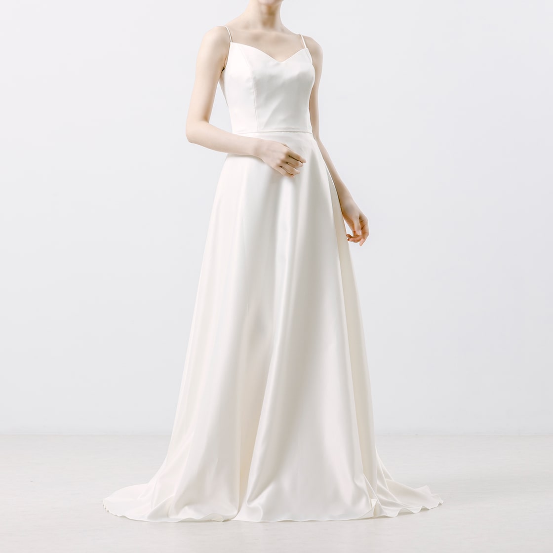シンプルなサテンドレスの上にオーバードレスを羽織ることでアレンジができる2weyドレス。